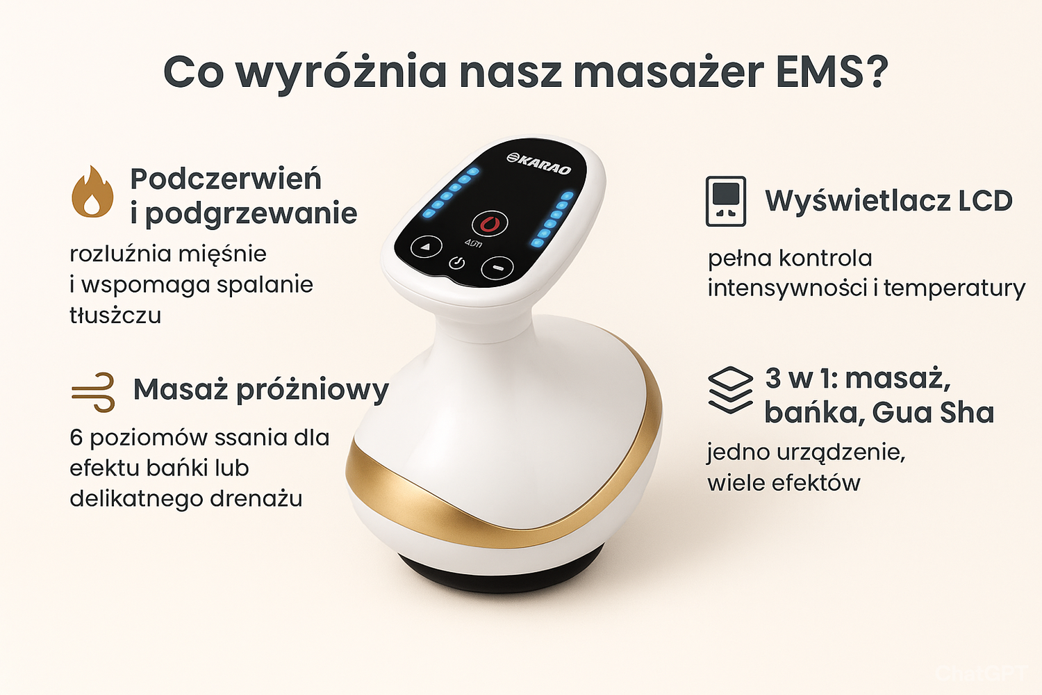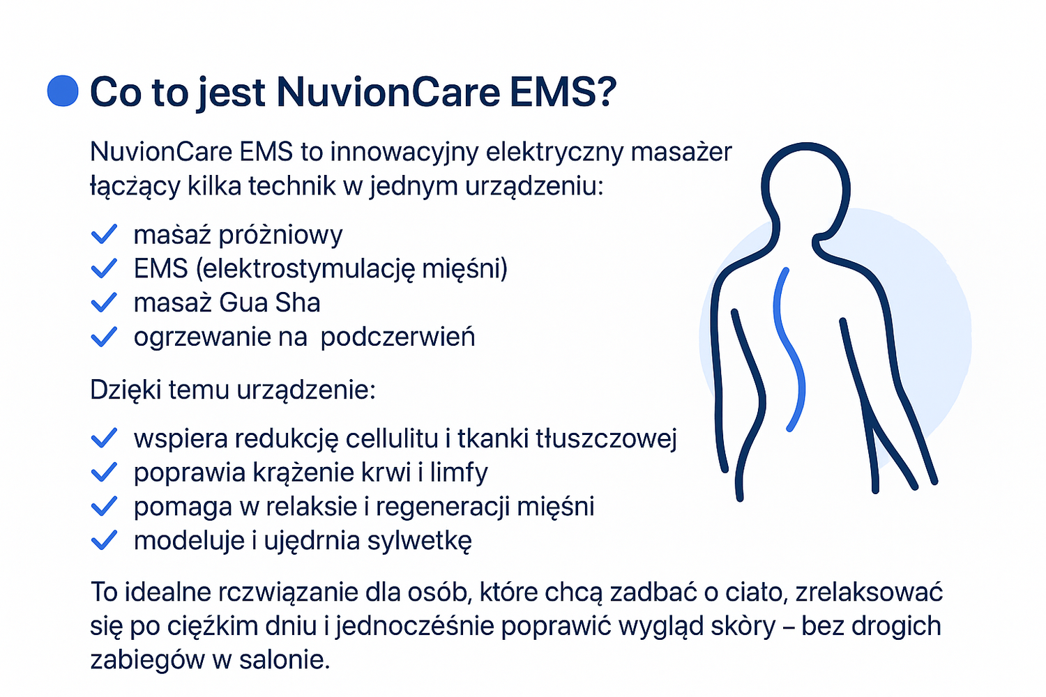 NuvionCare EMS to innowacyjny elektryczny masażer łączący kilka technik w jednym urządzeniu: